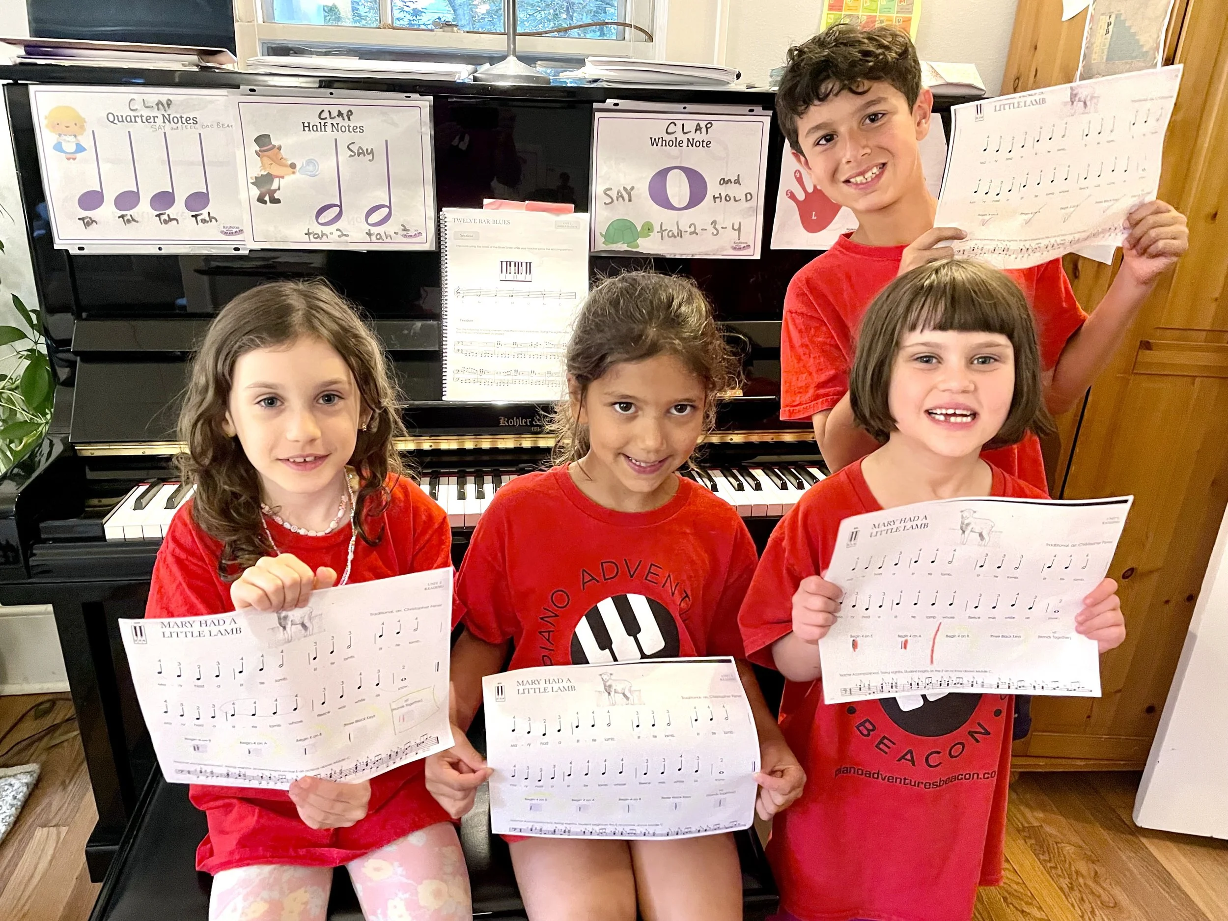 My beginner lessons are designed to create collaborative learning experiences, allowing students to motivate and inspire one another as they progress and grow in their piano journey! Individual challenge levels will be given to each student, providing them opportunities to take on a more difficult skill or concept as they are ready. This music is fun to learn! I teach a comprehensive piano education: reading, rote, theory, pitch, rhythm, and technical/artistic skills. *3-week trial classes are available if space*
